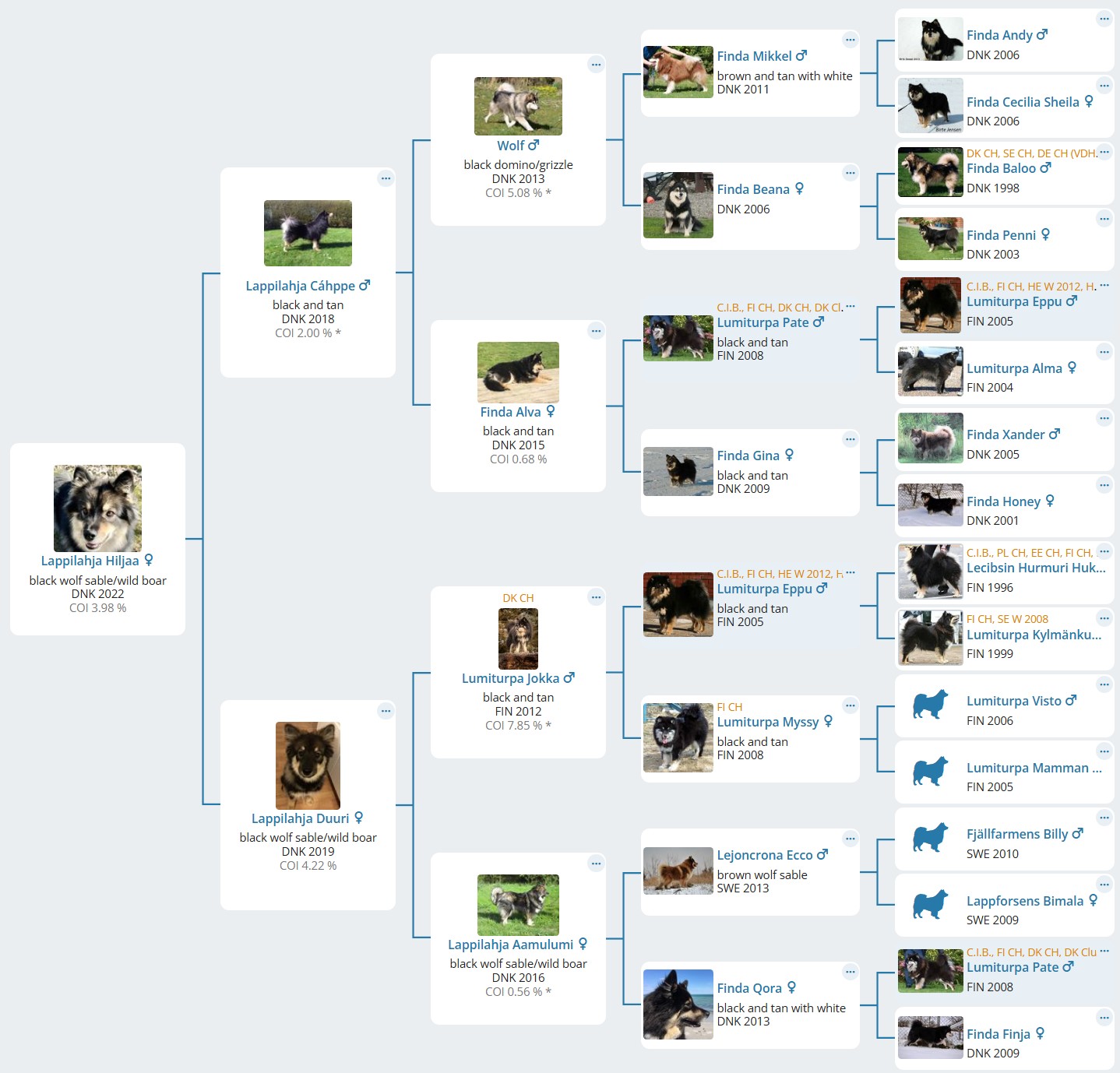 Tryk på stamtavlen, så den forstørres, eller se den på: finnishlapphund.bredarchive.com